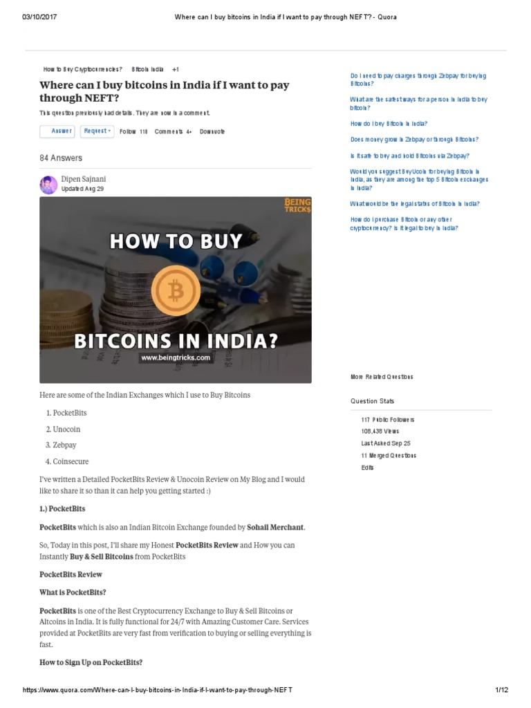 Buy bitcoin from one platform where is the price is low, and sell at another place where price is high.you can use bitcoinrates.in to compare buying and selling price of bitcoins on various wallet company in india.; Enter your mobile number now to start our quick kyc process. India's first bitcoin exchange zebpay says there are more than 1.5 million bitcoin users in india and 200,000 users are being added each month. Bitcoin price slips below $34k: Bitcoin price is rising again. Launched in 2013, unocoin lets customers buy, sell, store, use and accept bitcoins. A customer may place an order to buy 50 btc when the price is less than coindesk's price by 100 inr and unocoin shall give a call to the customer when unocoin is able to. The startup has nearly 3.7 lakh unique customer logins. This is mainly due to the fact that the demand for bitcoin is a lot higher in india than what can be perceived in the global market. Current price in all 3 exchange ( zebpay, unocoin & coinsecure ) are very high in compare to bitcoin.com price. This is the explanation that zebpay gave for the above question in their official forum. Why is the price of bitcoin higher in india? The trading price for purchasing bitcoin via cash is higher than online payments on the website, hinting at the higher demand for cash settlement.